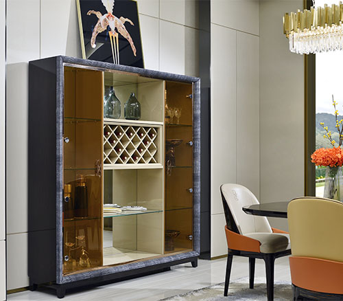酒柜对不少家庭来说,已经成为餐厅中的一道不可或缺的风景线,它陈列的不同美酒色彩艳丽,可令餐厅平添不少华丽的色彩,看着就令人食欲大增。